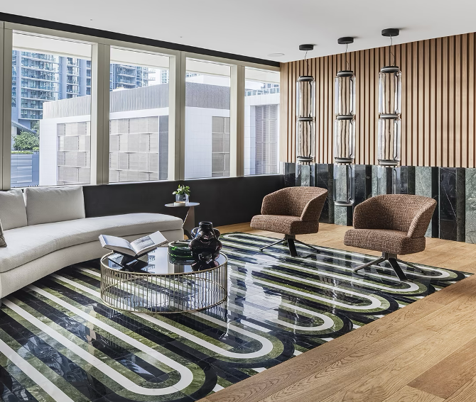 Ridged wood panels feature sharp, clean lines that create a sleek, modern look. Unlike the more organic curves of fluted panels, ridged panels offer a crisp, linear texture that brings a contemporary edge to luxury interiors. This style is perfect for high-end homes that prioritize a minimalist, modern aesthetic.